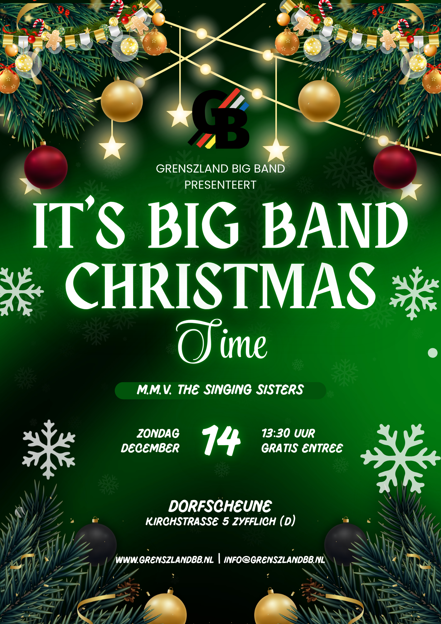 Die Grenszland Big Band kommt aus der Gemeinde Berg en Dal. Die Musiker kommen aus der Gemeinde Berg en Dal, dem Kreis Kleve (D) und der umliegenden Region.